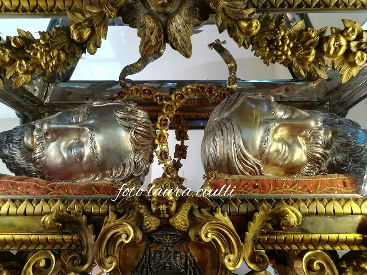 Nel 1862 il cardinale G.Bedini, vescovo di Viterbo-Tuscania ha fatto realizzare un reliquiario dove sono conservati i frammenti dei crani.